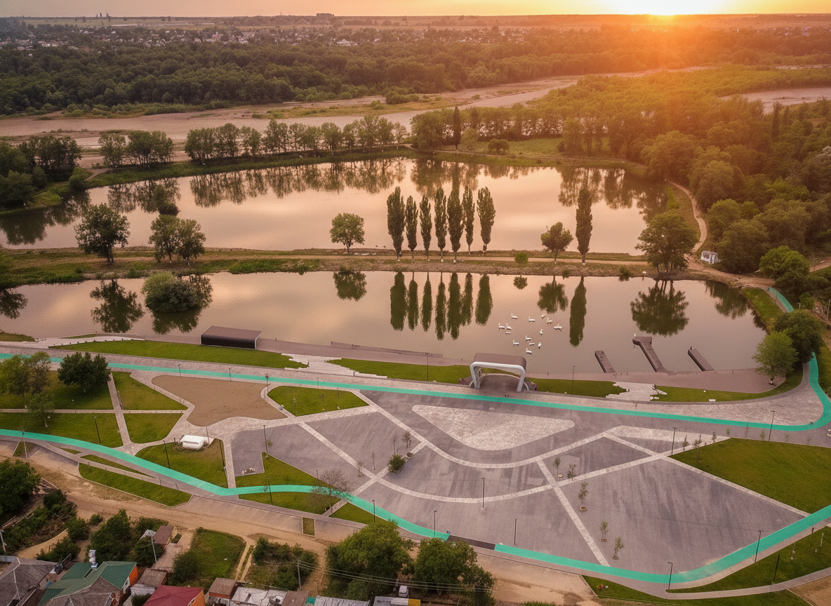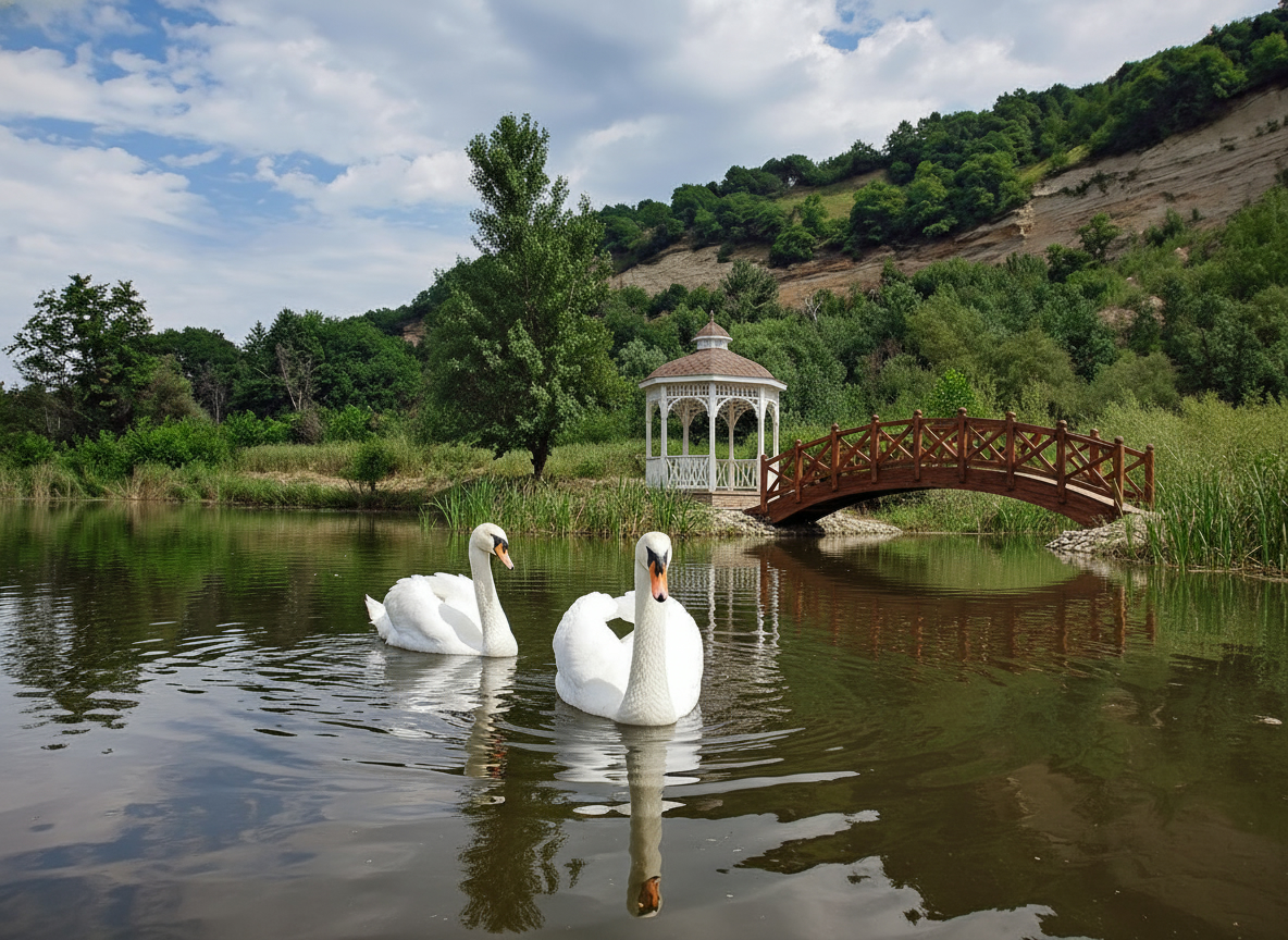 Парк «Чистые пруды» — это новое место для отдыха, которое находится рядом с рекой Лаба. Здесь можно увидеть белоснежных лебедей, которые плавают в пруду, а также уток.